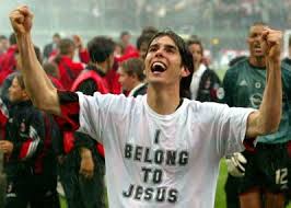 Arguably the world’s best soccer player, Kaka, boldly proclaims who he belongs to! Kaka is from Brazil and plays on the highest level of professional soccer in the world. Kaka often wears this bold t-shirt under his uniform jersey. It is common for soccer players to remove their shirts after games. This provides Kaka a great opportunity to proclaim his faith to the world. In South American Brazil where Catholicism is so widespread and therefore the emphasis on the virgin Mary, it is quite a testimony and statement that Kaka announces he belongs to Jesus.